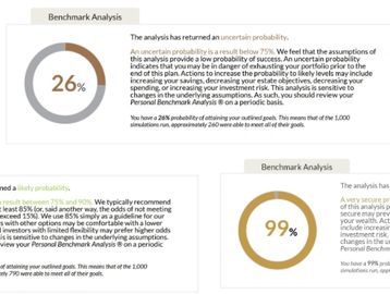 Are you currently on track to retire and not run out of money? Create a retirement analysis to see your probability of success.
